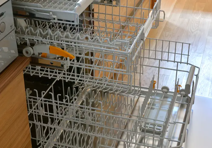 国産メーカーの場合は、食事の度に食洗機を使うことを想定しているため容量もコンパクトな幅450ミリが主流です。逆に海外の場合は夜間に一日分の食器や調理器具をまとめて洗うという考えのため、カトラリー用のトレー、食器用のトレー、大皿や鍋などが入るトレーと3段にドロワーが分かれていて、幅も600ミリと大きなものが基本となります。