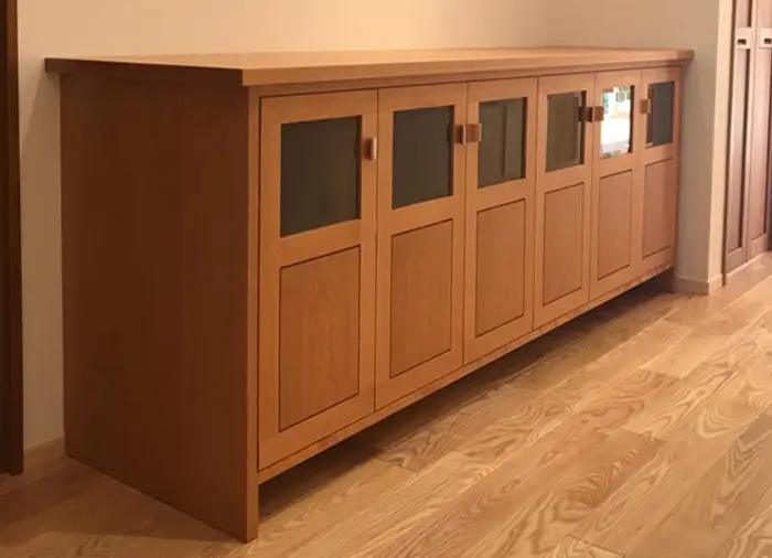 腰高の収納家具で、板扉・ガラス扉・引き出しの有無や大きさなど、そのサイズや仕様は多岐にわたります。