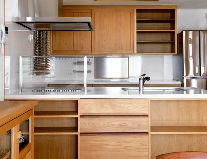 キッチンだけでなく背面収納についても腰より下の高さのキャビネットは引出タイプだと使い勝手がよく、それよりも上の部分の場合は、扉よりも引き戸の方がより安全性が高くなります。