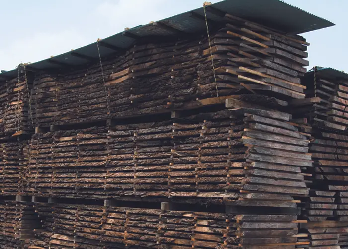 具体的には最低1年以上かけて野ざらしの状態で自然乾燥させて木の内部の水分を抜いていきます。