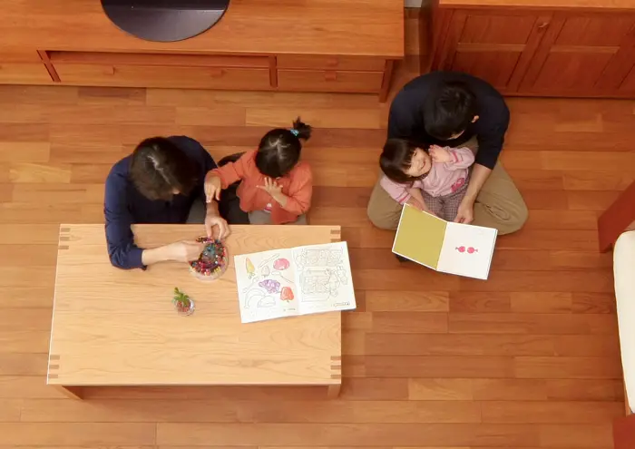 椅子に座っている時より、広々した床に座ることで様々なくつろぎの姿勢をとることができ、リラックスしながら使うことができます。