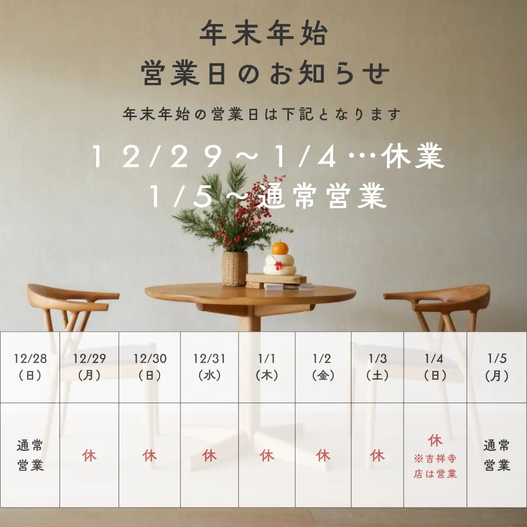 吉祥寺店は明日1月4日10時半から、表参道店・自由が丘店・横浜元町店は1月5日10時半より平常営業を予定しております。