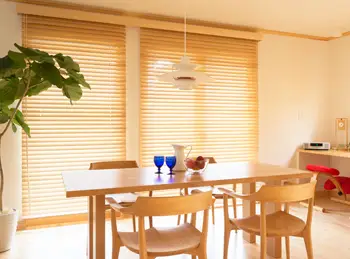 最近では木のパネルを使った自然な雰囲気のウッドブラインドも人気です。