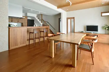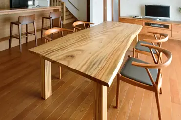 そしてダイニングは「悠久の自然を感じる」と一目惚れされたクスの一枚板をテーブルに。