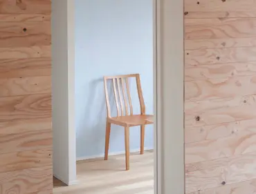 ここでポイントなのは通常は壁下地などに使われるラーチ合板をランダムな幅・厚さで隣り合わせて貼ったこと。