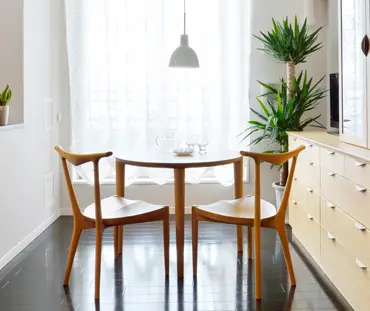 ダイニングテーブルは平面の面積が広いため、近くに置くと縦方向に空間の立体感を出す上でも有効です。