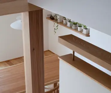 造り付けの棚を飾り棚として。棚下が収納でなければ、アイビー等のツル性の植物を垂らすことで