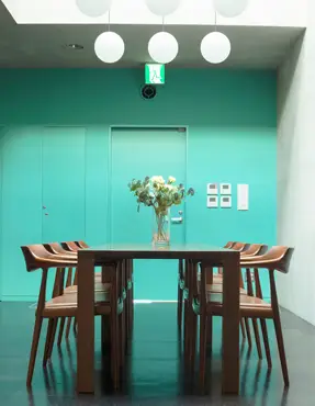 ・緑は行動を起こしたいときに合う色でもあります。前述の共用部(ユーティリティスペース)やホームオフィスにもお勧め。特に効果的なのがアップルグリーン、ライムグリーンなどの明るい緑。前向きな気持ちをかき立て、積極的に動きたい気分にさせてくれます。