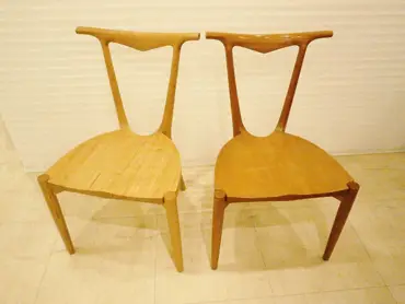 左が製作から5年が経ったチェア。右が製作間もないチェア。
