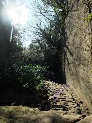 山のふもとから頂上まで続く日本寺の境内は、緑が多く気持ちの良いハイキングコースになっています。