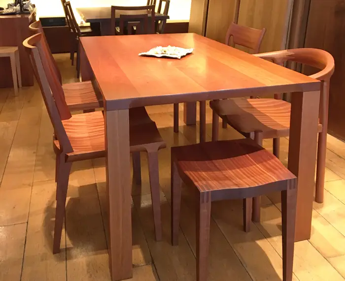 銀座店に新たに加わったサペリ材の4脚の無垢材チェアはこちらです。