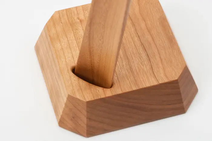 台座の部分も無垢材のブロックから削り出して製作をしており、木目のつながりまでお楽しみ頂けます。