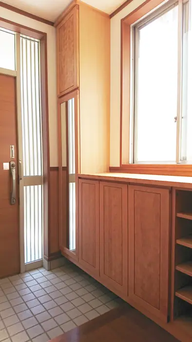 我々家具蔵でも玄関収納を無垢材オーダー家具として考える場合、事例やバリエーションも豊富に取り揃えております。