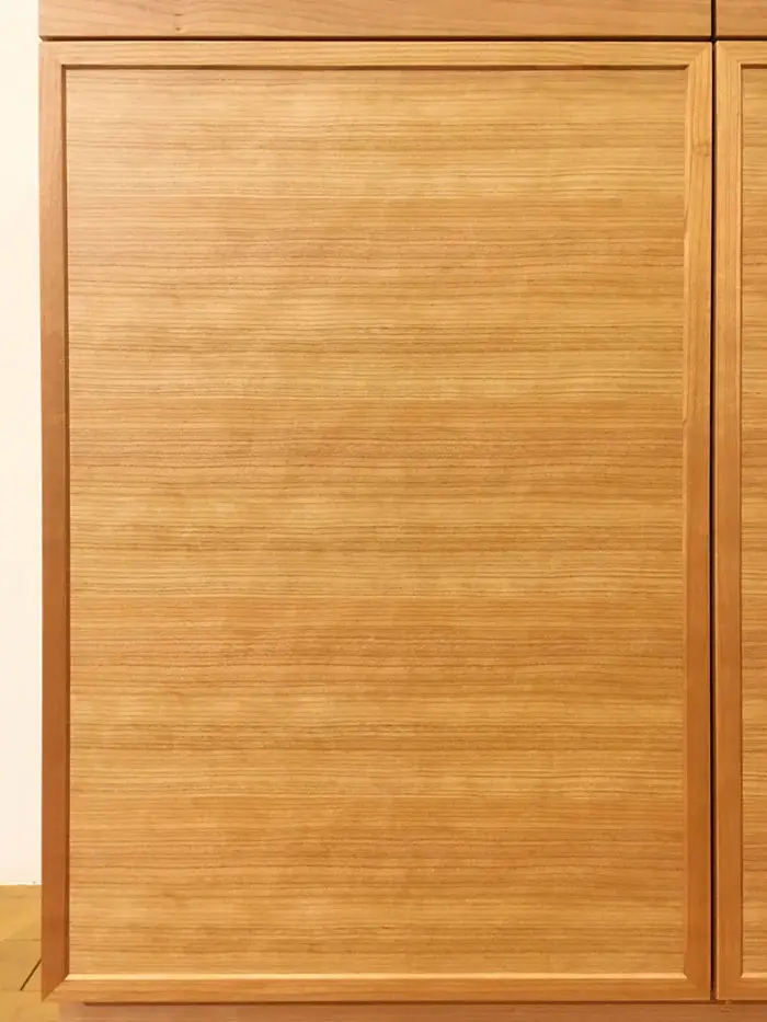 この扉を構成する四方框を敢えて15ミリと幅を薄くし、すっきり感を出した扉が新しくバリエーションに加わりました。