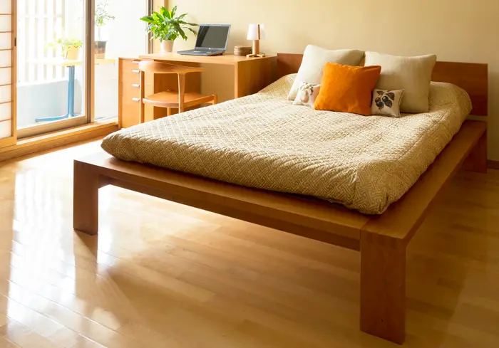 同じく無垢材を木組みしたフレームにヒノキチップを畳芯にした特注畳を敷いたフレームは、布団派の方の「ハウスダスト」「立ち上がり」「寒気の影響」といった考慮点を解消してくれるもので、グッドデザイン賞も受賞しています。