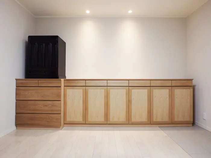 収納家具については、お手持ちの仏壇をどのように収納するか、という部分がポイントとなりました。