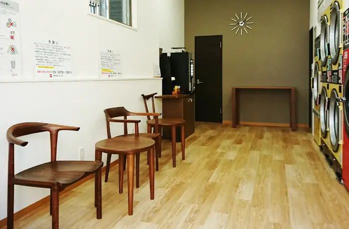 と、少々強引な展開でしたが、今回は自由が丘店より素敵な雰囲気のカフェ風コインランドリーに家具蔵の無垢材家具を置いていただいている、というお話です。