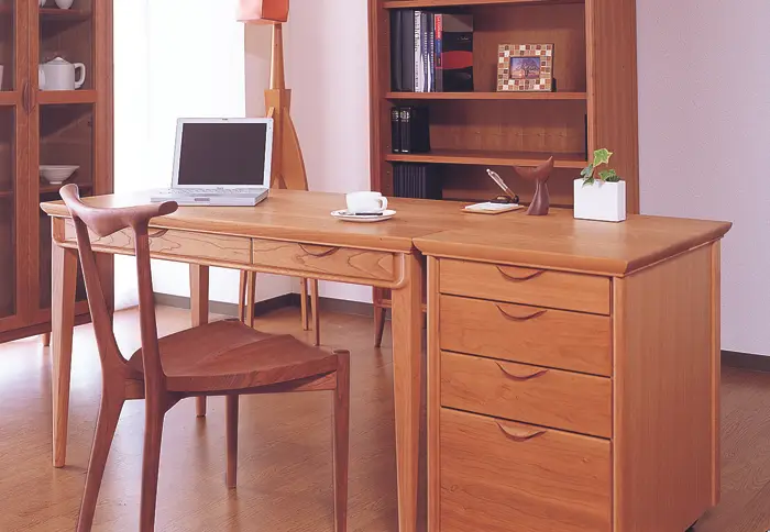 平机の左右の片側あるいは両側に袖(引き出し)のついたデスクです。
