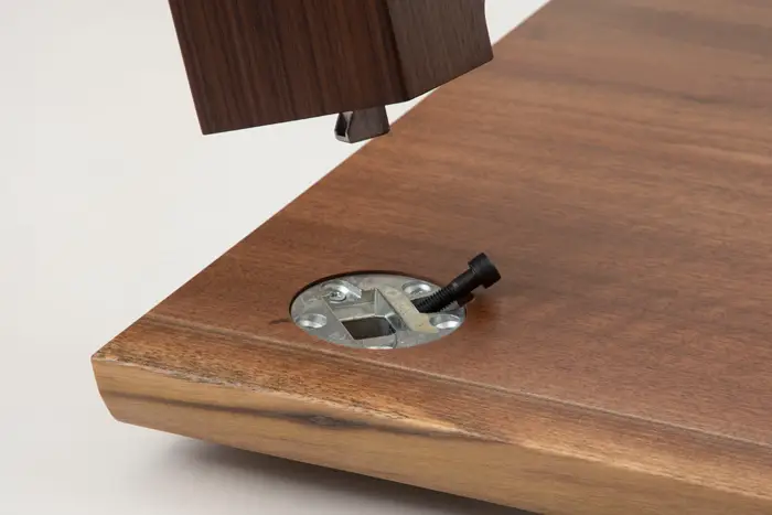 このタイプの脚は基本的に天板と脚は固定せずに付属の滑り止めを使用します。