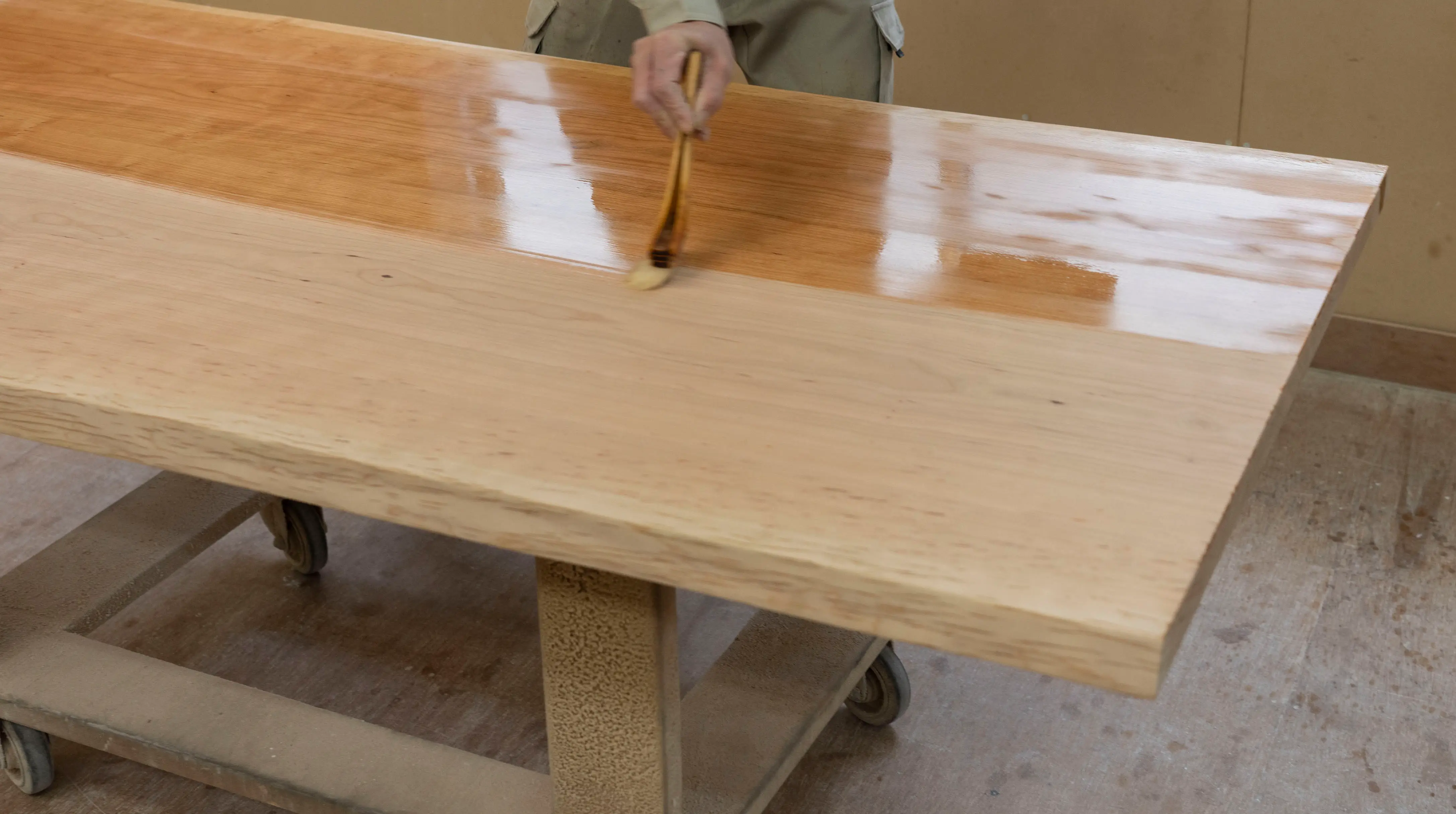 しかし鏡面のような仕上がりになるので無垢材の質感を活かすことは難しい塗装方法です。