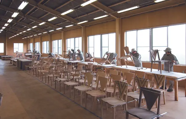 家具蔵では、すべての無垢材チェアを先述した「木組み」で熟練の職人が手仕事で作り上げます。