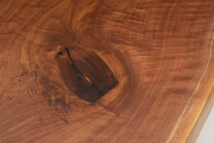 一枚板の割れや節を埋める技法として一般的なのが「樹脂埋め」「埋め木」、そして「チギリ」です。