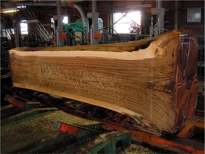 固い広葉樹の中には予想外のもの、例えば狩猟に使うライフルの弾が埋め込まれていることもあるのだとか。