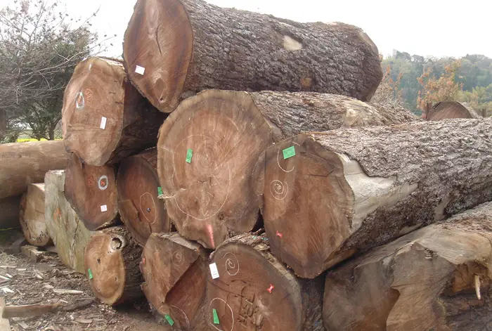 山からおろされた原木は、家具蔵の中でも一番の目利きの職人が現地まで赴き、太さや節の有無、年輪の幅、曲がりの大きさ等を丸太の状態から見極めます。