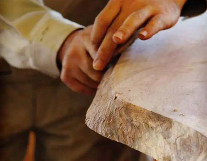 木の材質や自然形状に合わせていくつもの道具を自在に使いこなします。